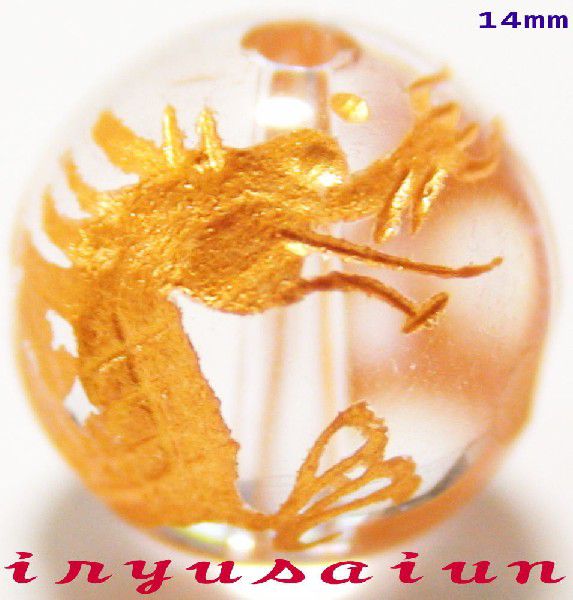 | 商 品 名 | 【水晶】天然石手彫り青龍14mm金箔刻印珠パワーストーンブレスレット用 |