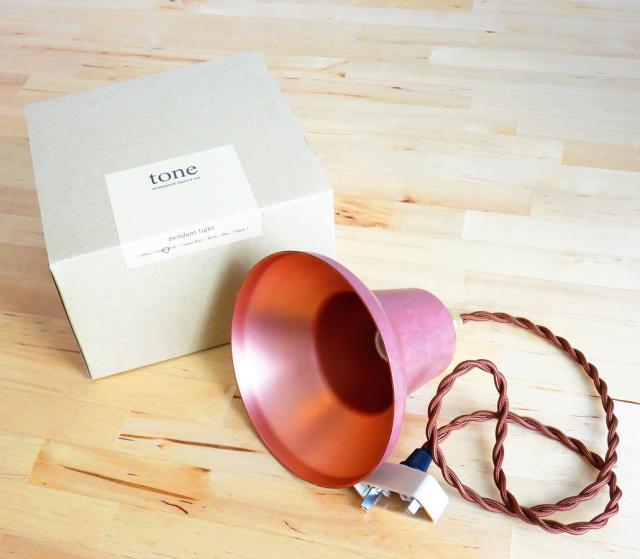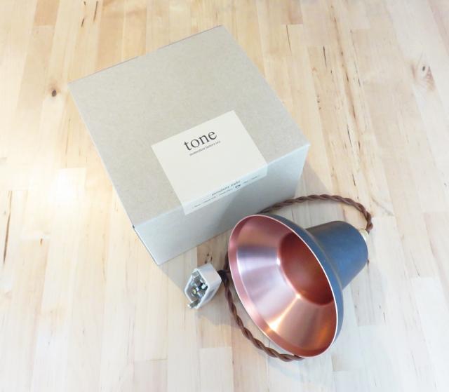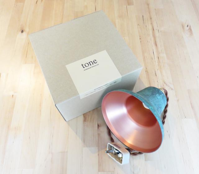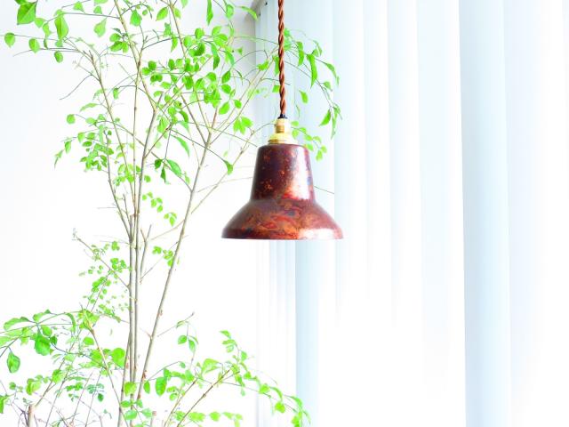 toneシリーズのペンダントライトSはアンティーク感を出しつつ現代生活に違和感なく溶け込むデザイン。朝の光はシェード外側の着色された銅を美しく際立たせ、夜に明かりを灯せば内側の磨かれた銅が暖かい光を反射していく。一日の光の変化で銅素材の色彩を楽しむ事ができる照明器具です。高岡銅器4百年の歴史と伝統を進化させ、自然に背を向けずブロンズ・真鍮といった銅合金に自然調和した着色法を培い、唯一無二の発色と質感、深みと趣のある存在感を演出しています。