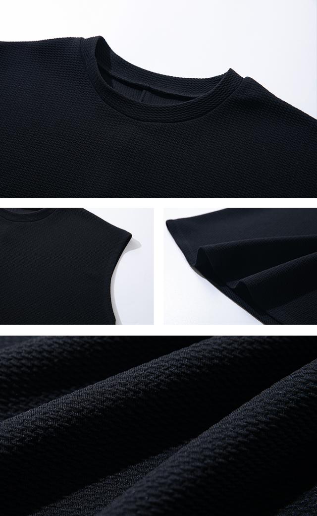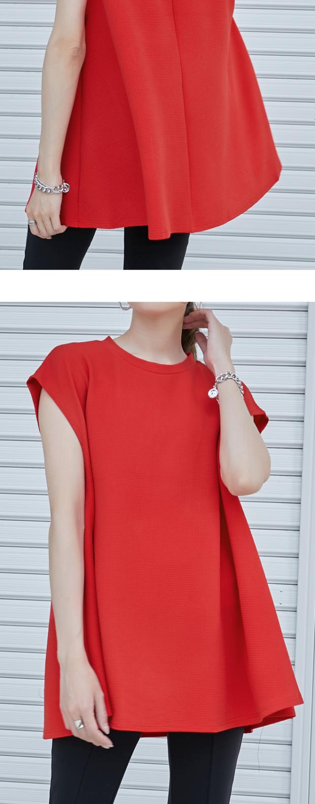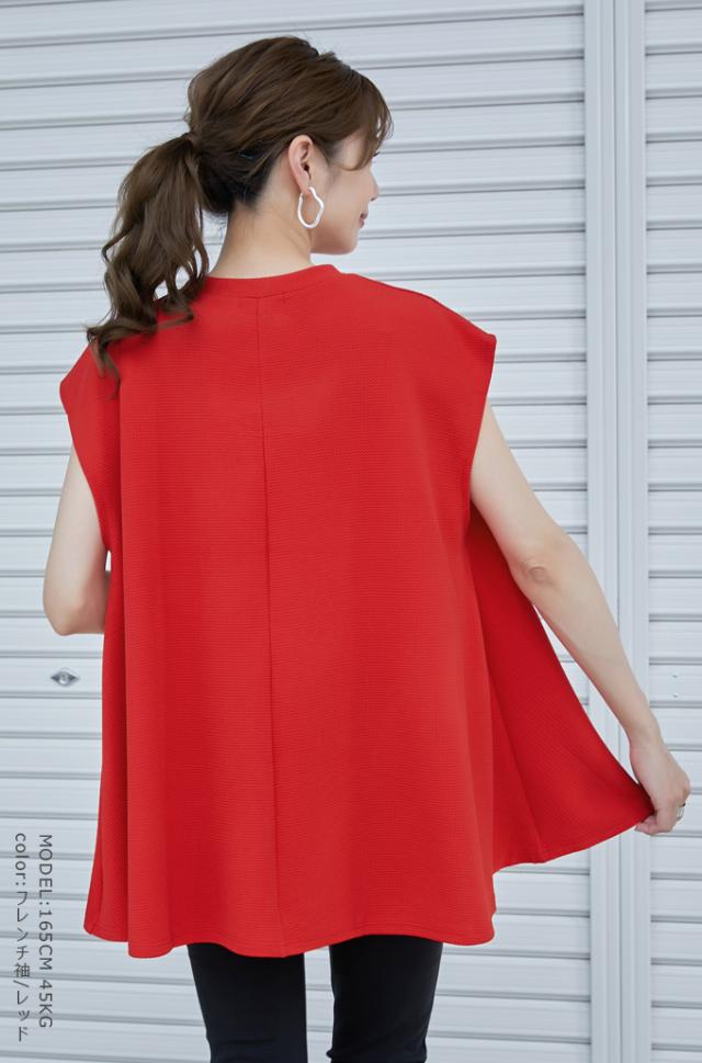 karei ワッフル素材 ふんわり チュニック ノースリーブ トップス フレア チュニック丈 カットソー ややハイネック 立体 上品10tv5775