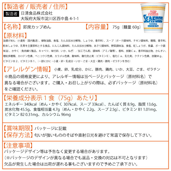 日清食品 カップヌードル シーフード 75g (20個)