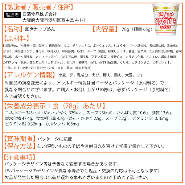 日清食品 カップヌードル 78g (20個)