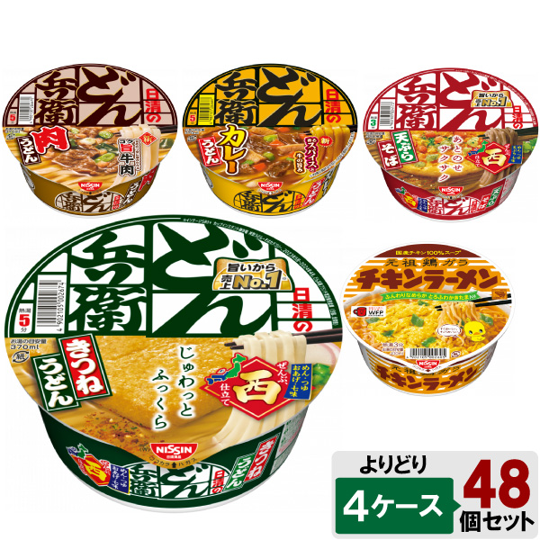 日清食品 どん兵衛 & チキンラーメン 選り取り (12個×4ケース) きつね 肉 カレー 天そば