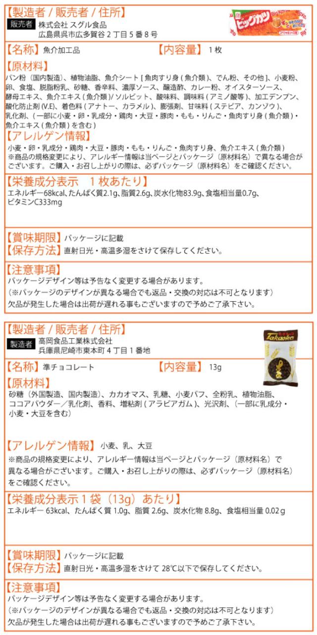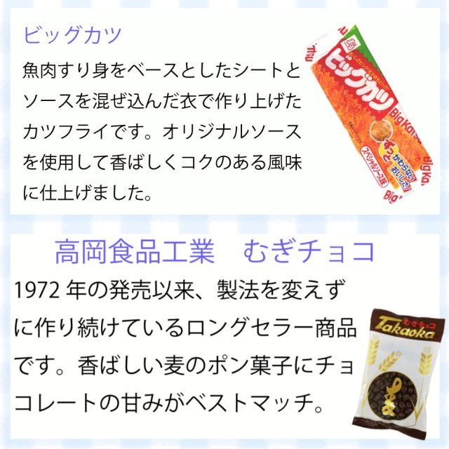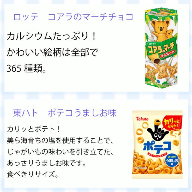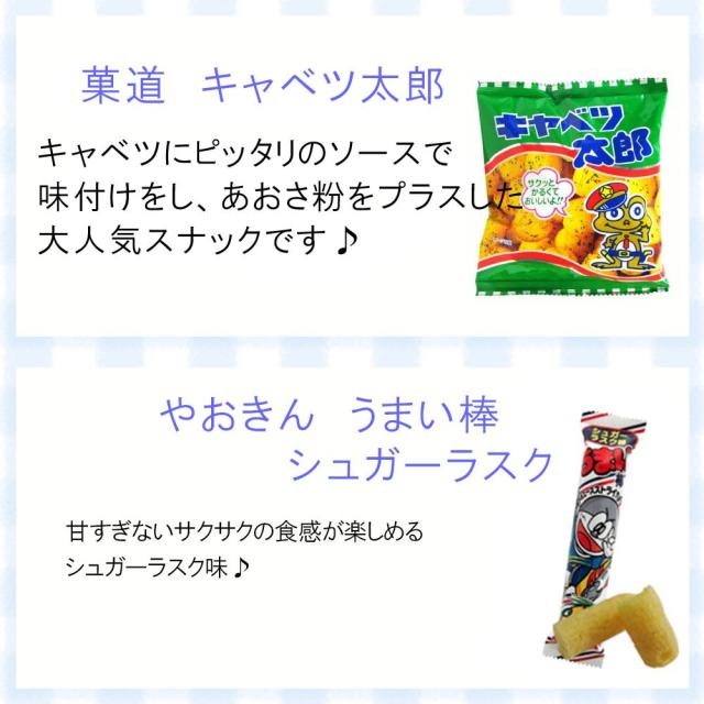 ポテトチップス コアラのマーチ シャーベットペロ キャベツ太郎 おにぎり うまい棒 クッピー ビッグカツ チョコバット ヤングドーナツ やいたら さくらんぼ