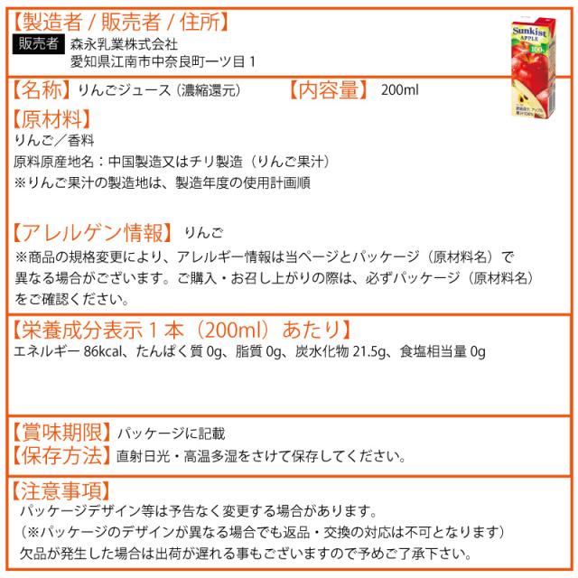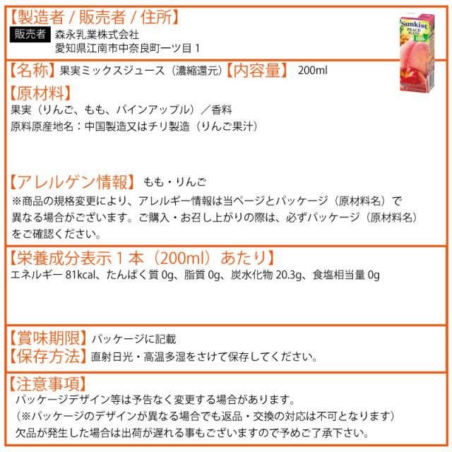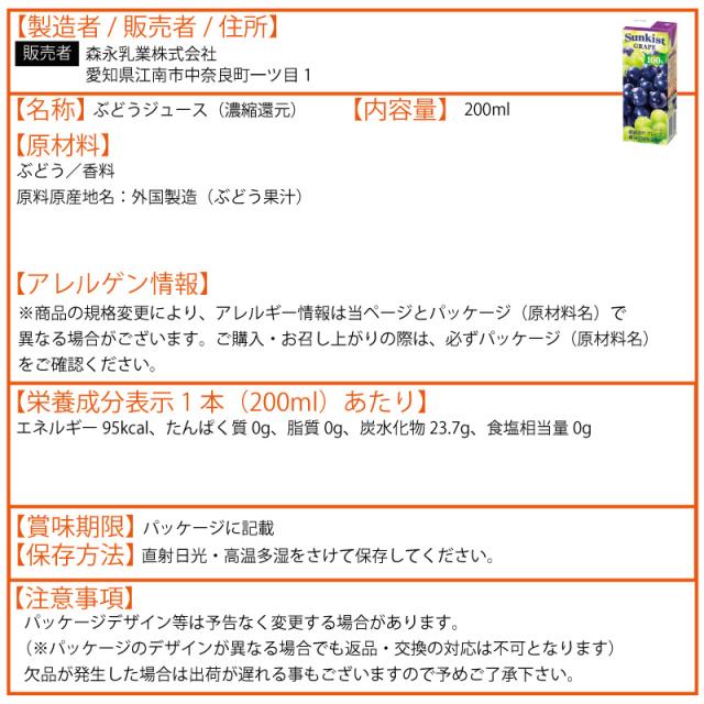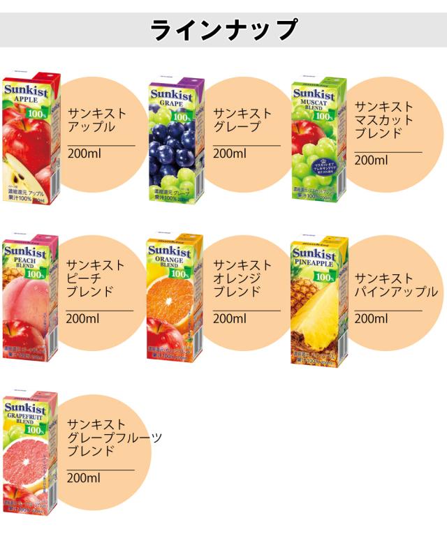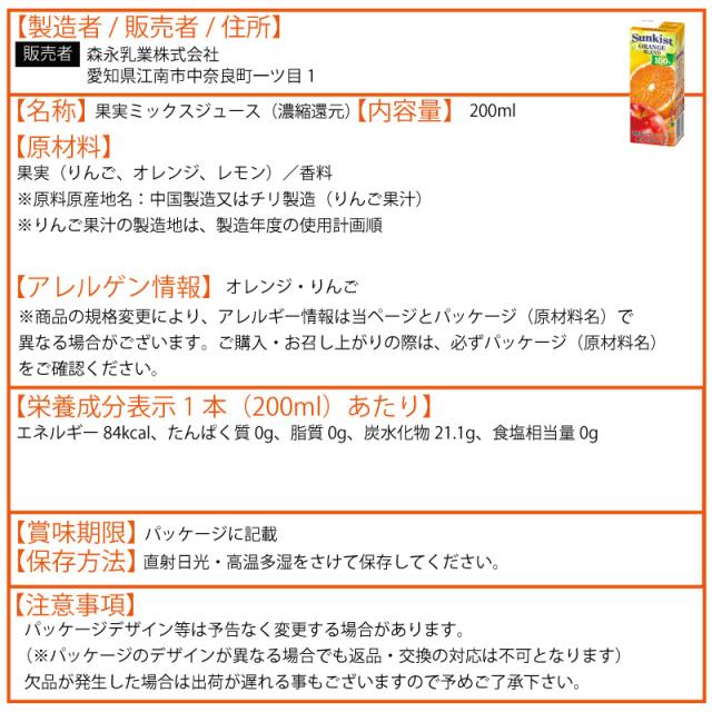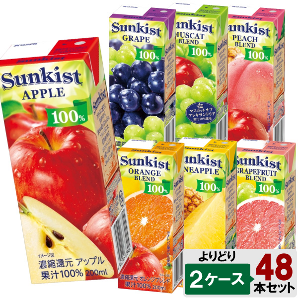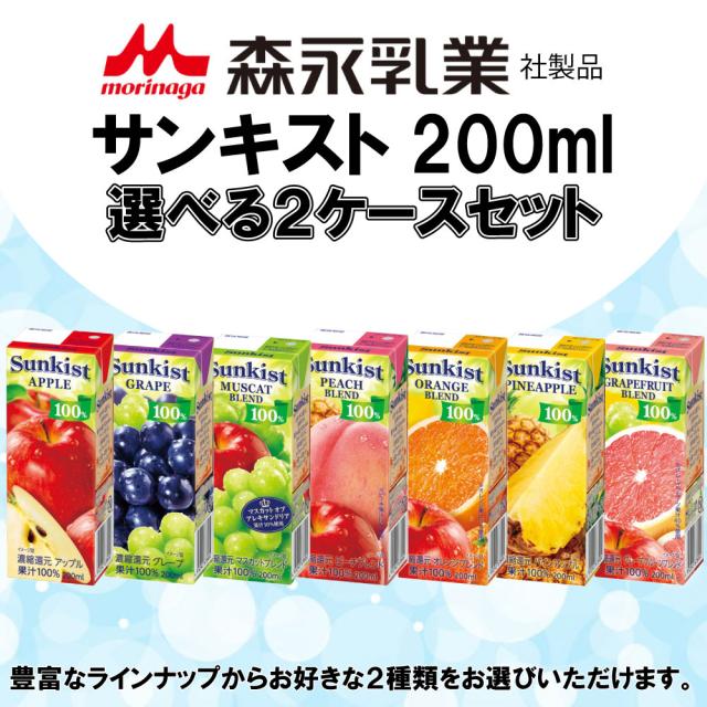 森永乳業 サンキスト 200ml よりどり 選べる 2ケース セット 48本(24本×2ケース)アップル パインアップル グレープ マスカット グレープフルーツ オレンジ
