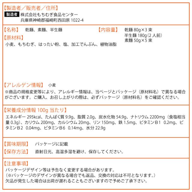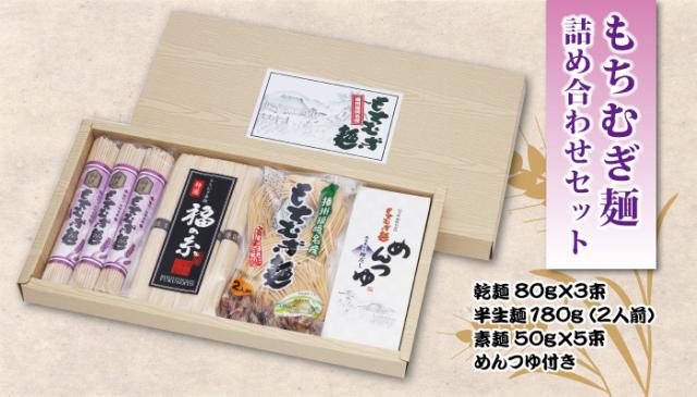 もちむぎ食品センター もちむぎ麺詰め合わせ もちむぎ乾麺80g×3束・半生麺180g(2人前)素麺