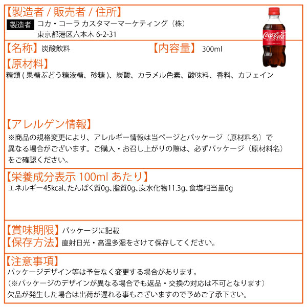 コカ・コーラ 300ml 24本 (24本×1ケース) PET コカコーラ 炭酸飲料 Coca-Cola 送料無料