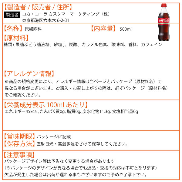 コカ・コーラ 500ml 24本 (24本×1ケース) PET コカコーラ 炭酸飲料 Coca-Cola 送料無料