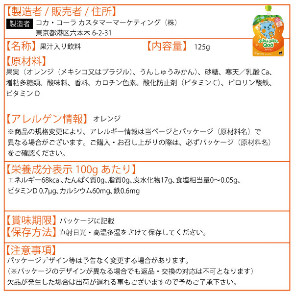 ミニッツメイド ぷるんぷるん Qoo(クー) みかん 125g 30個 (30個×1ケース) パウチ 安心のメーカー直送 送料無料