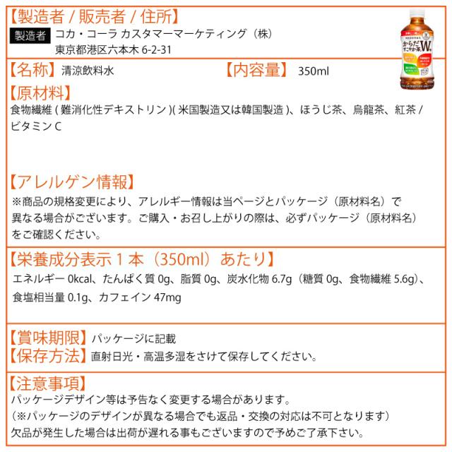 からだすこやか茶W+ 350ml 24本 (24本×1ケース) PET 特定保健用食品 トクホ 安心のメーカー直送 送料無料