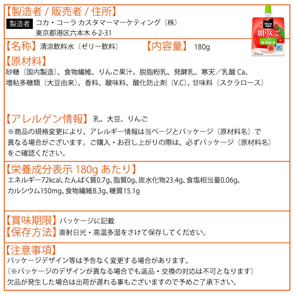 ミニッツメイド 朝りんご 180g 12個 (6個×2ケース) パウチ 朝食 安心のメーカー直送 送料無料
