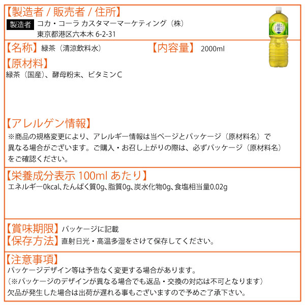 綾鷹 2000ml 12本 (6本×2ケース) PET あやたか 緑茶 安心のメーカー直送 送料無料
