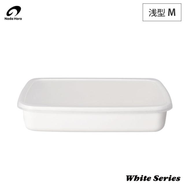 野田琺瑯 ホワイトシリーズ レクタングル 浅型 M 1.4L シール蓋【ホーロー容器/キッチン用品/琺瑯/容器/保存容器/浅/入れ物/ストッカー/食材/調味料/収納/ホーロー/白/日本製】