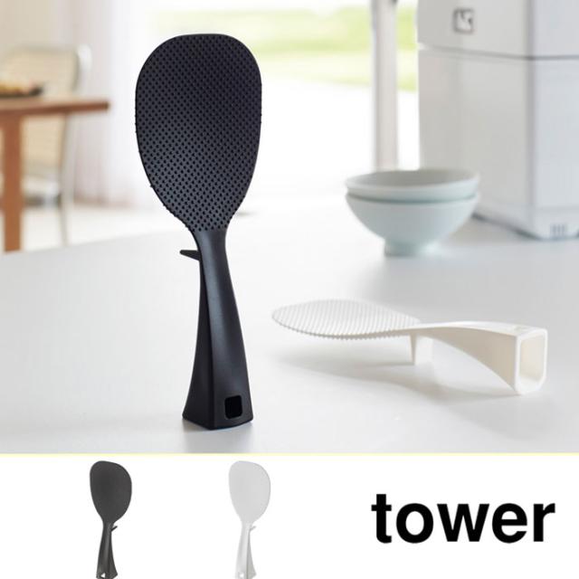 tower タワー 立って置ける しゃもじ ホワイト・ブラック【立つしゃもじ/立つ/立てられる/杓文字/くっつかない/フック穴/プラスチック/耐熱/収納/台所/キッチン小物/キッチンツール/yamazaki/山崎実業】