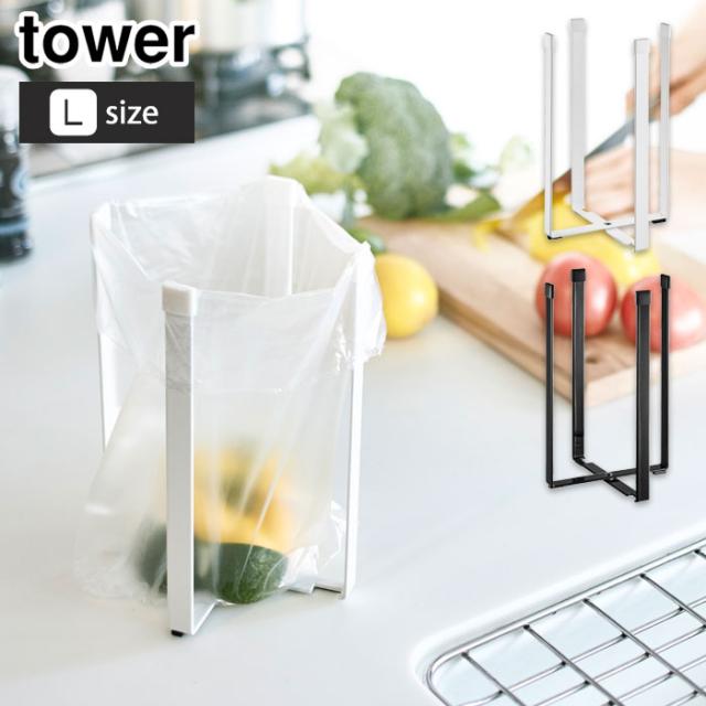 <メール便 送料無料>tower タワー ポリ袋エコホルダー L ホワイト 3180・ブラック 3181 山崎実業 キッチン ポリ袋スタンド