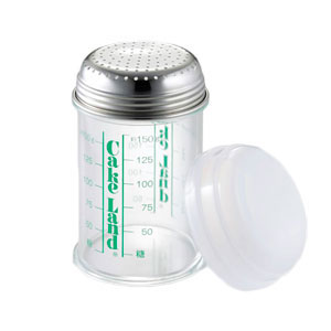 目盛が付いていて、使いやすい大きさ。上面には沢山の穴があいていて、粉・糖がまんべんなくきれいにふれます。その上、計量器が組み合わされており一層使い勝手の良い商品です。