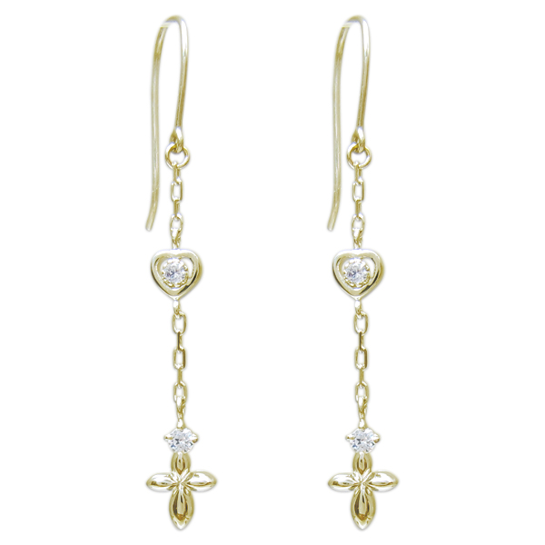 4月誕生石ダイヤモンドを使用した10金製のハート&クロス(十字架)モチーフフックピアス(アメリカンフック)です。