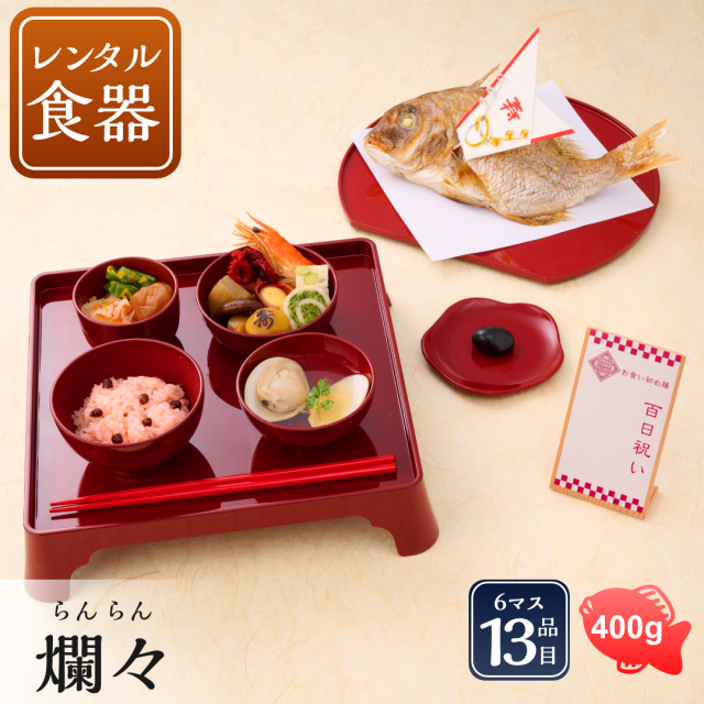 【リニューアル】【レビュー特典】お食い初め セット【お食い初め膳 -爛々-(レンタル食器セット)】 食器不要・盛付済のお食い初めセット 国産最高級ブランド真鯛 歯固め石 送料無料