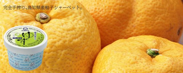 手しぼりの柚子シャーベットに使用する柚子は地元高知県産の果実を使用。旬の間に生産農家から直接仕入れ、機械を一切使用せず、エグ味を出さない為に文字通り生の柚子玉から手搾りで搾汁。機械を用いた搾汁に比べ、取れる果汁の量は格段に少なくなりますが、透き通るような爽やかな味わいを生み出す為、手間暇をかけて製品に仕上げています。 |
