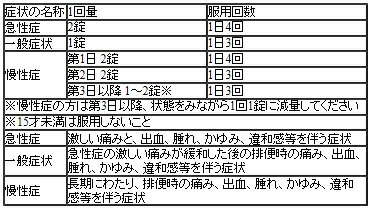 | 効能・効果 | 内痔核、外痔核の症状の緩解 |