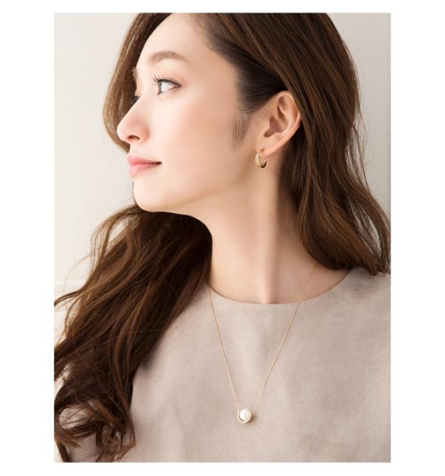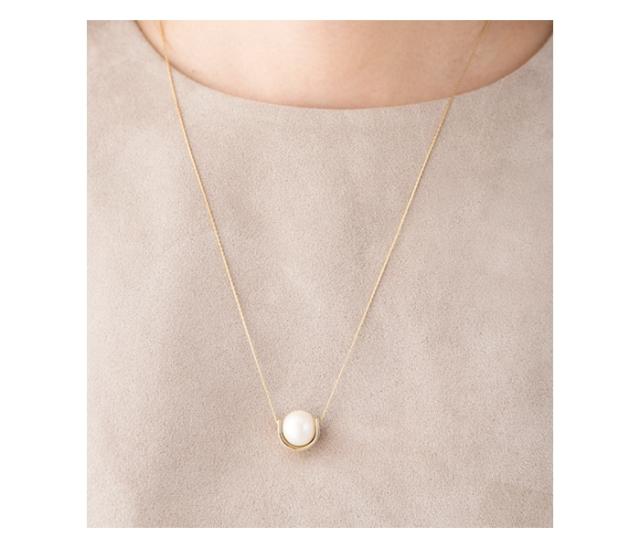 艶やかな地金の質感とナチュラルな表情を浮かべる淡水パールが