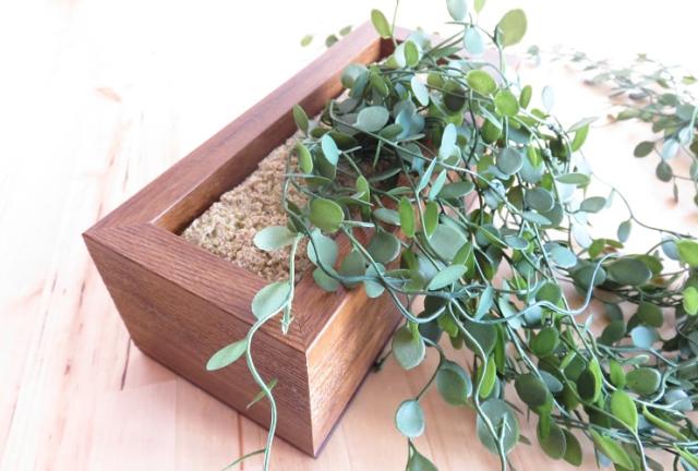 自然な色合いのグリーンは木材等の茶ベースに、またボックスは大人の色合いの木目調のため、古材などのナチュラルテイストにも似合います。空間を立体的に演出、お部屋をおしゃれなカフェ風の雰囲気に大変身。