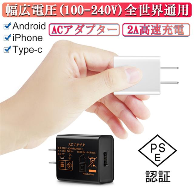 ACアダプター USB充電器 2A 高速充電 iPhone17/16/15充電可 PSE認証 高品質USB電源アダプター コンセント チャージャ 急速 超高出力 【PL保険加入済み製品・安心】