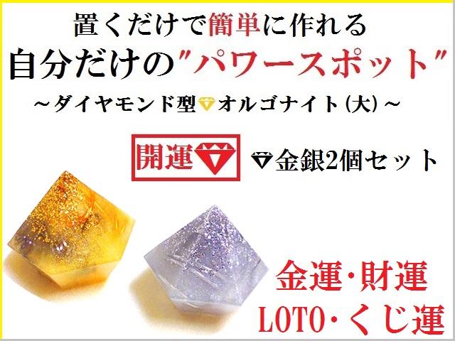 金運&財運&LOTO・クジ運・ギャンブル運UP+オルゴナイトパワー★水晶★オルゴナイト★ダイヤモンド型★大★金銀2個★パワーストーン