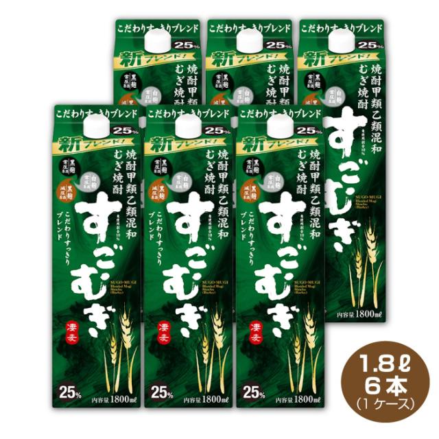 全国送料無料 甲乙混和 むぎ焼酎 すごむぎ 1.8L×6本 25% 合同酒精 1800ml 1ケース