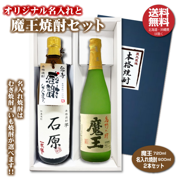 送料無料 魔王とオリジナル名入れ焼酎 本格焼酎 2本セット 25度 名入れお酒 化粧箱入り 父の日ギフト