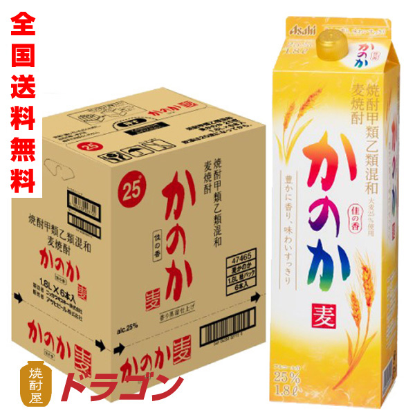 全国送料無料 かのか 麦 25度 甲乙混和焼酎 紙パック 1.8L×6本 1ケース 1800ml アサヒ むぎ焼酎