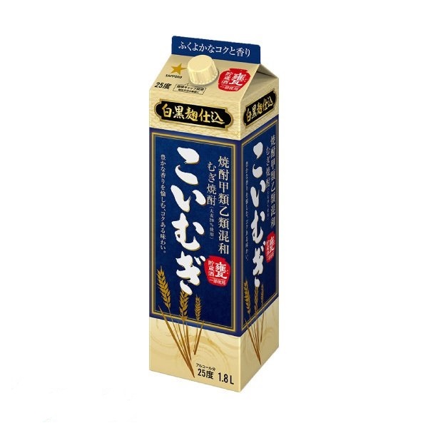 サッポロ むぎ焼酎 こいむぎ 1.8Lパック 甲類乙類混和焼酎 1800ml 甲乙混和 麦焼酎