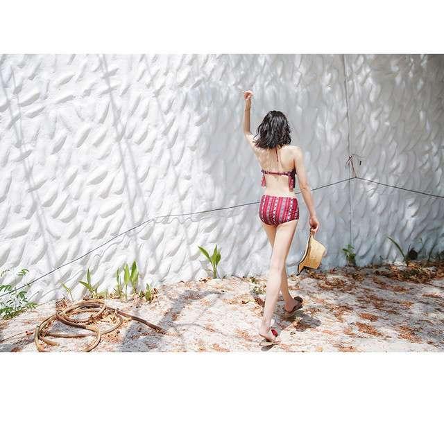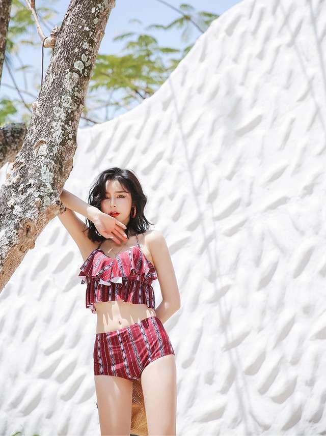 ハイウエストビキニで脚長効果を演出◎