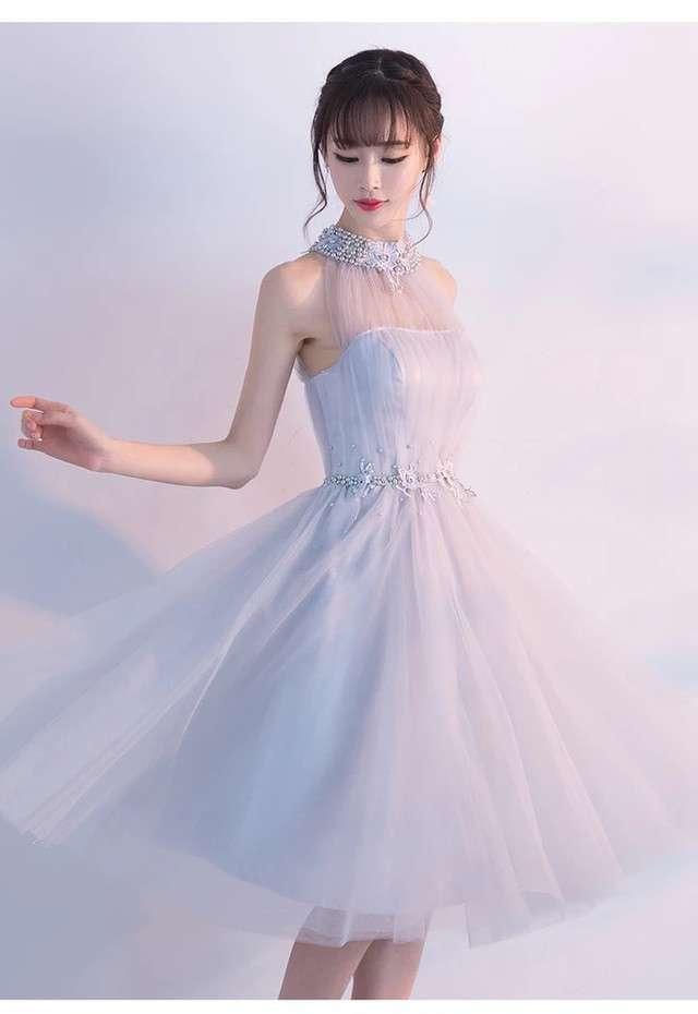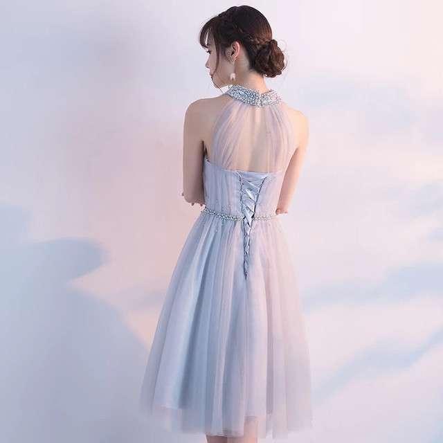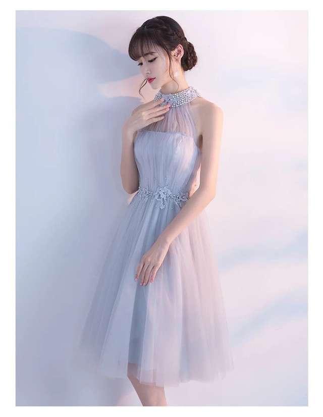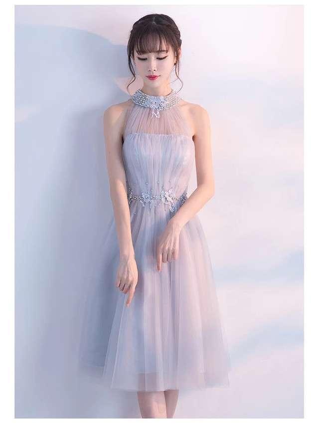 パーティードレス 春夏 結婚式 大きいサイズ 30代 ひざ丈 ノースリーブ ハイネック レース 無地 Aライン 透け感 フォーマル シンプル