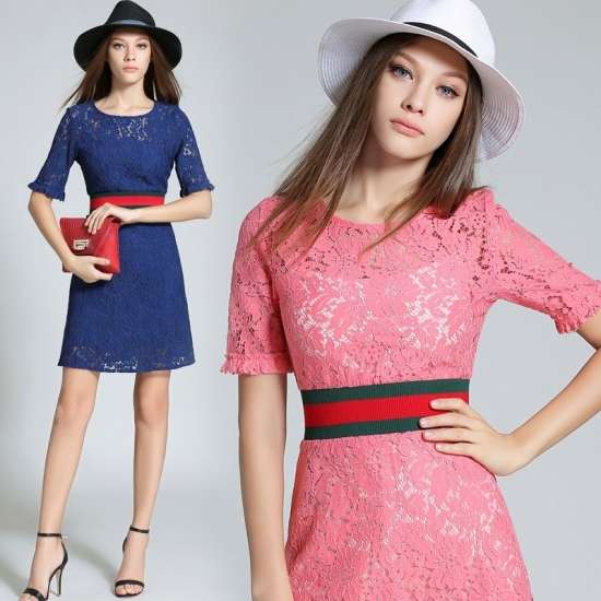 袖あり パーティードレス ワンピースドレス ワンピース ドレスワンピ お呼ばれドレス イブニングドレス 結婚式 二次会 披露宴 お呼ばれ デート 同窓会 謝恩会 食事会 ピンク カラードレス 大きいサイズ ショート丈 5分袖 フレア Aライン レース 総レース シースルー 透け感
