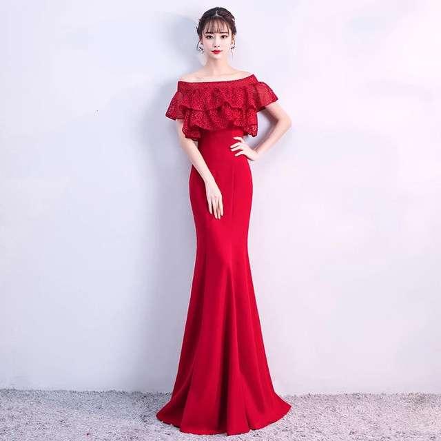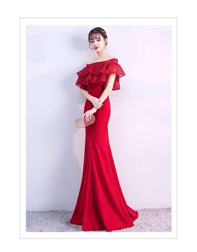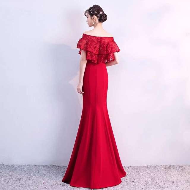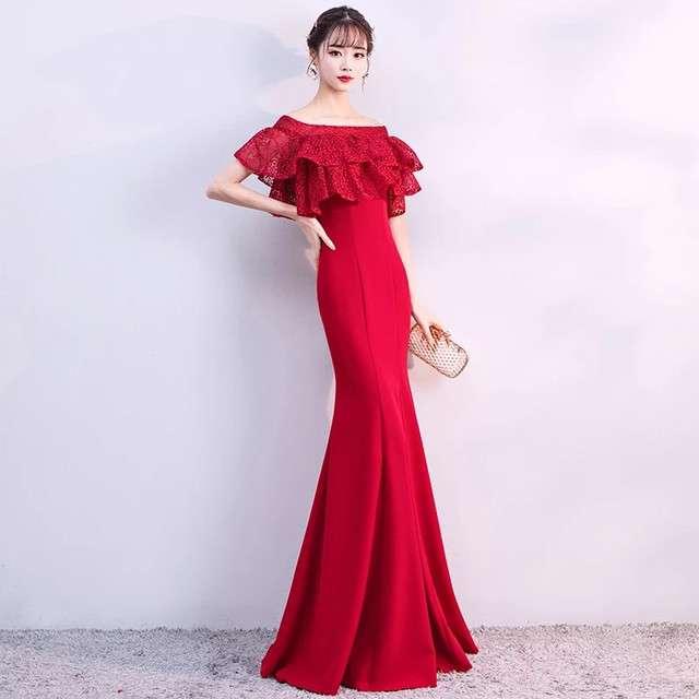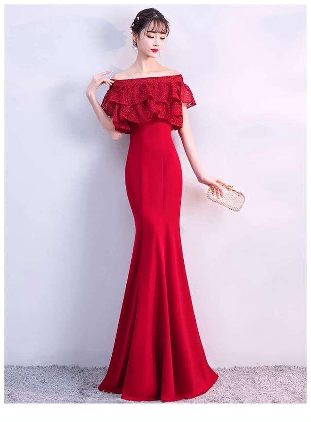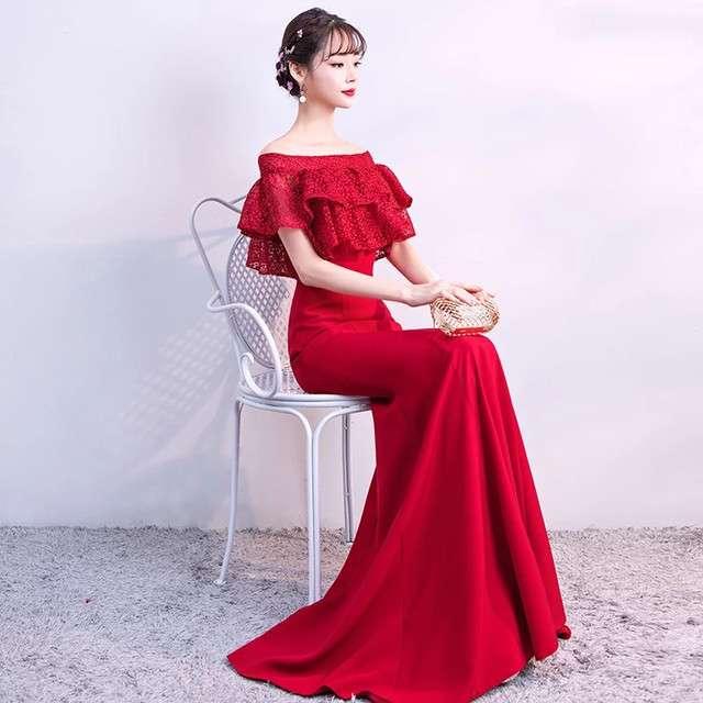 ロングドレス 赤 スレンダーライン マーメイドライン エレガント 上品 清楚 パーティ お呼ばれ デート 結婚式 結婚式二次会