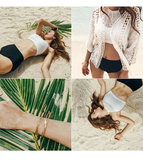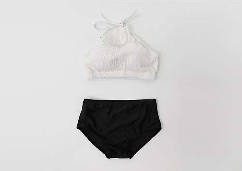 胸から首にかけてのレース素材が印象的なビキニ♪