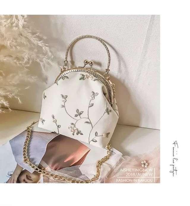 パーティー バッグ 結婚式 花柄チェーンバッグ がま口バッグ ショルダー レディース ハンドバッグ 小さめ 可愛い がま口 おしゃれ 上品 定番 お呼ばれ 結婚式二次会 デート 記念日 お出かけ 刺繍 クラッチバッグ 斜め掛け フォーマル サブバッグ