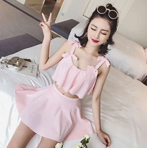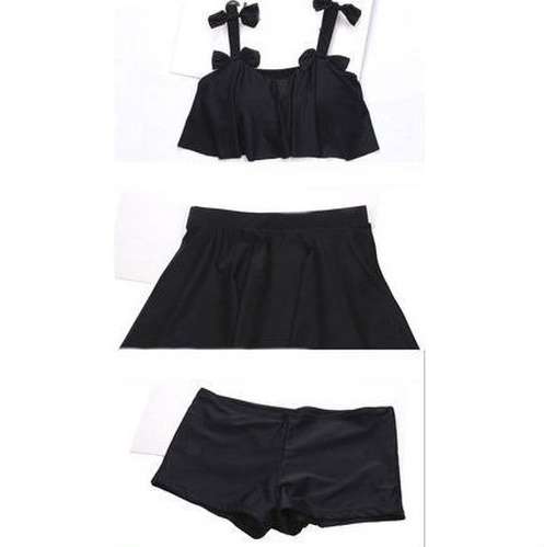 水着 体型カバー 3点セット ビキニ レディース 2019新作水着 40代 パッド付き フリル セクシー リボン 無地 ママ 着痩せ くびれ 可愛い オシャレ トレンド 韓国 海 プール フレアスカート フレアトップ ガーリー キュート パンツ 大人可愛い