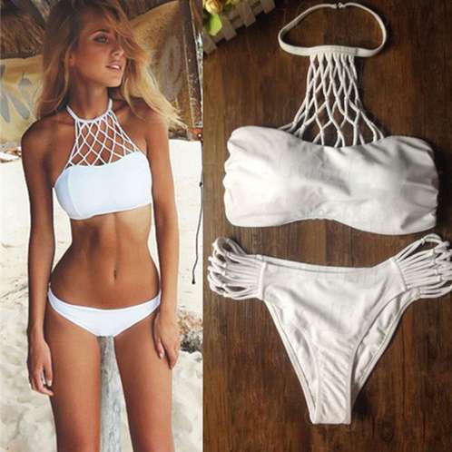 水着 ビキニ タンキニ レディース 2019年新作 ビーチウェア 40代 30代 ブラジリアン ホルターネック セットアップ 無地 レース 透け感 シンプル ローライズ 韓国 ママ オシャレ 海 プール マリンスポーツ サーフィン ホワイト