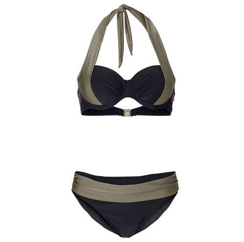 太めのホルターネックでしっかりバストアップ!