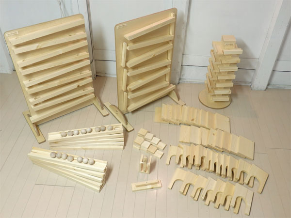 【野出考案のコロコロドミノ装置の大きな特徴】 ●それぞれの装置すべてに行き止まりが無い・球が止まる工夫がある ●規格が統一されている→無限の組み合わせ・シンプルで安全、丈夫