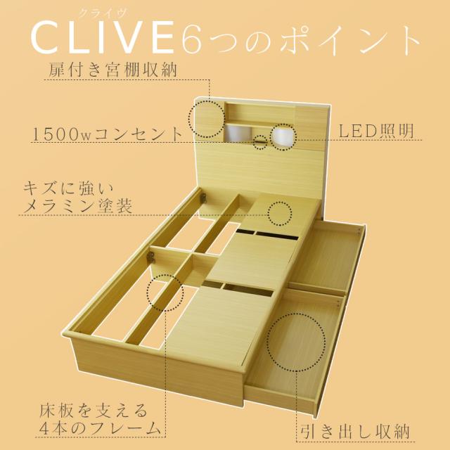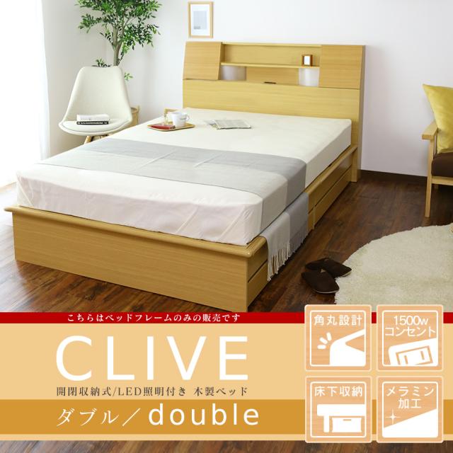 べッド ダブル 収納 宮棚 扉 ベッドフレーム 扉付宮棚 木製 組み立て 棚 引き出し 2口コンセント クライブ D インテリア家具 おすすめ おしゃれ 北欧 big_ki プレゼント tm