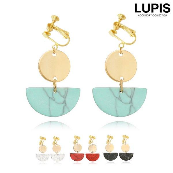 イヤリング ネジバネ式 サークル ハーフムーン プレート ターコイズ 大理石 揺れる ゴールド LUPIS ルピス