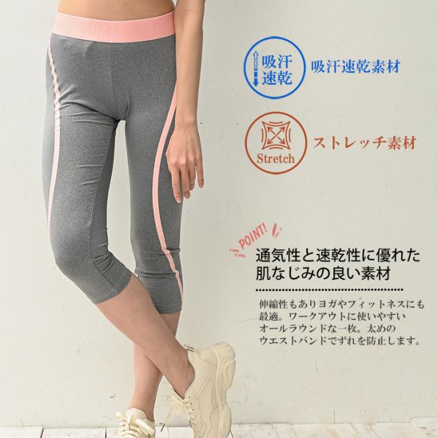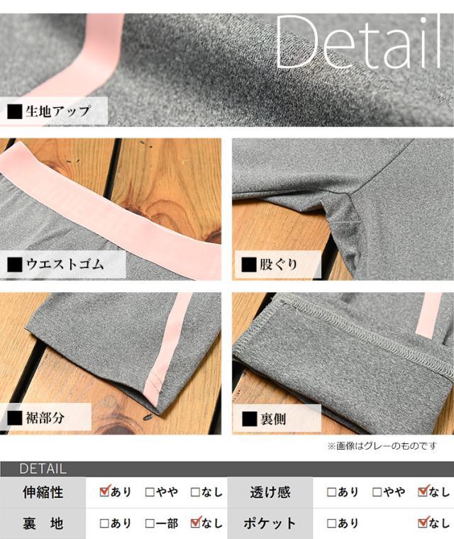 トップスとも合わせやすい ベーシックなライン入りレギンス。 ウエストバンドでずれを防止します。 吸水速乾効果のある素材を 使用しているので ヨガやフィットネスにも最適です。 |