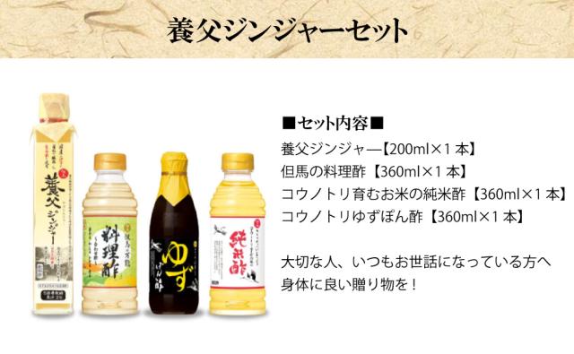 日の出 養父ジンジャーセット(4本組) 酢 飲料酢 調味酢 ヘルシー 但馬醸造