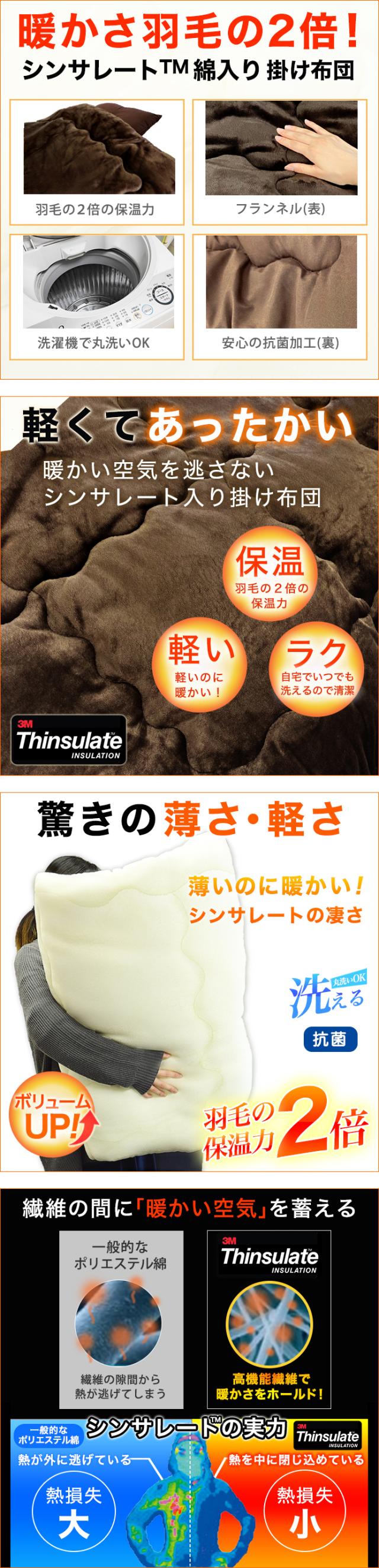 選べる2タイプ! 掛け布団 ダブル シンサレート 暖かさ羽毛の約2倍 フランネル & ほこりが出にくい布団 清潔寝具 ウォッシャブル