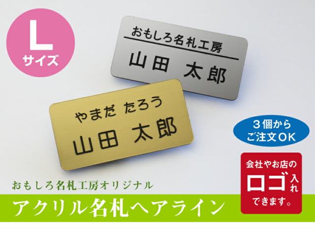 名札 クリップ 穴開かない 会社 カフェ 美容室 サロン ネームプレート アクリル名札ヘアライン Lサイズ 3個から注文可 ロゴ入れ可 翌々営業日出荷 穴空かない