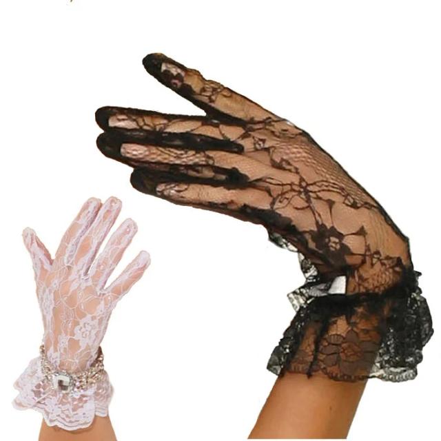 レース手袋 手首丈 ラッフル レースのグローブ 手袋 ウエディング グローブ フォーマル ブライダル 1260