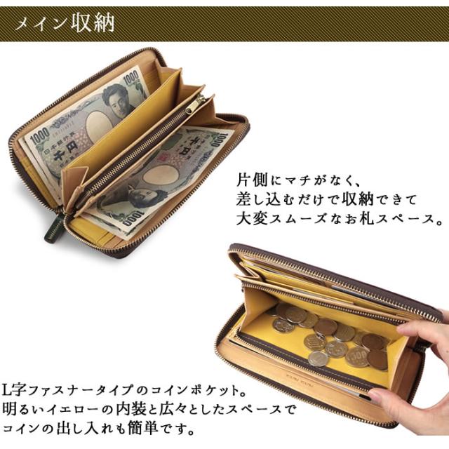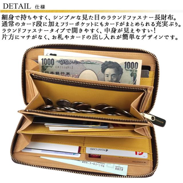 スリムで持ちやすい大容量長財布。大きく開くラウンドファスナータイプで出し入れ簡単!カードがたっぷり入るフリーポケットつき。