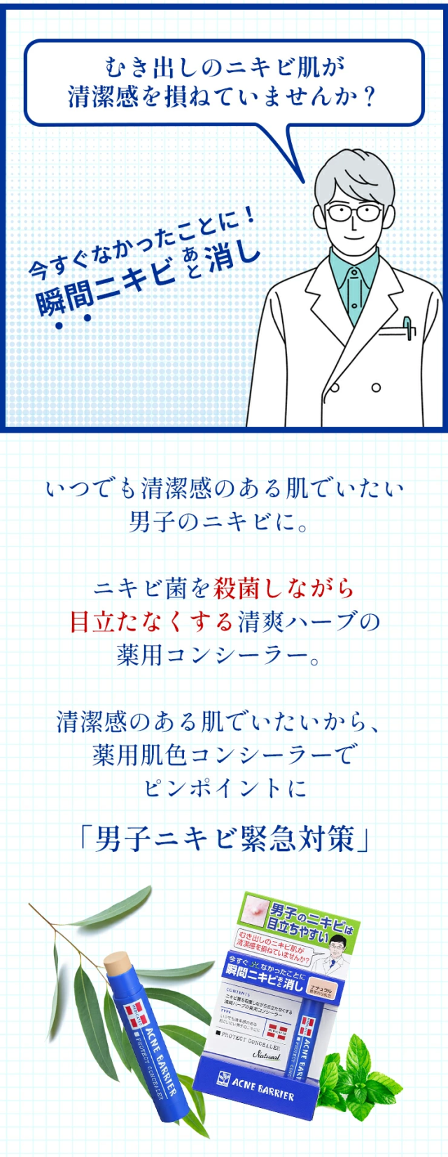 治りにくい男子ニキビを研究して開発された「メンズアクネバリア」 |